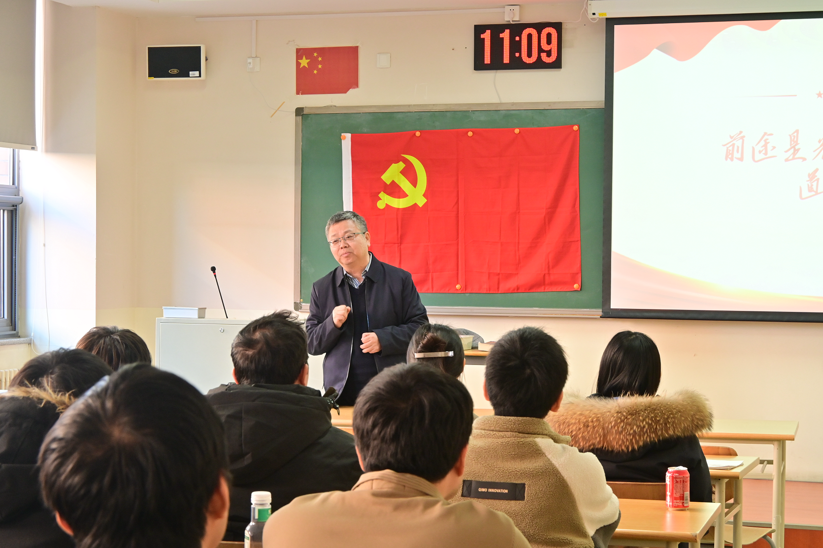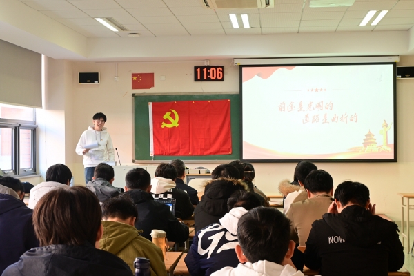 为深入学习党的二十届四中全会精神,引导青年学子将个人发展融入国家战略,光电学院20252202党支部于2025年11月17日在学园2-114举办了“全会引领创新路,科技赋能‘十五五’”主题党日学习活动,旨在加深同学们对国家发展战略的理解,明确新时代青年的科研方向与责任。本次学习活动邀请校党委委员、光电学院校部副院长屈一至列席会议并进行指导。